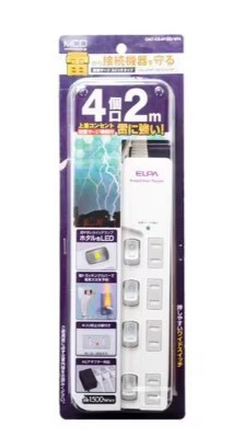 ナカバヤシ 耐雷サージ機能付き電源タップ OAT-CS4P20 ホワイト