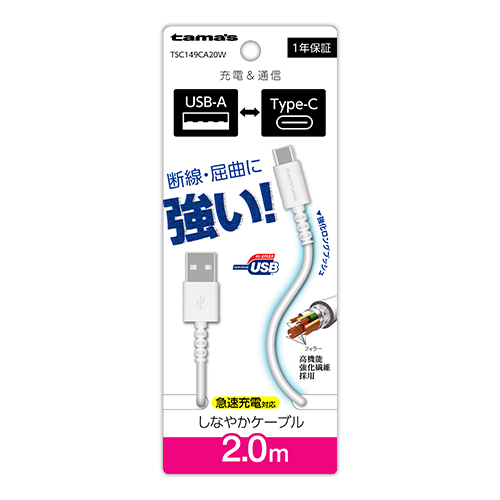 多摩電子工業 USB(C to A)ケーブル(2m) TSC149CA20W