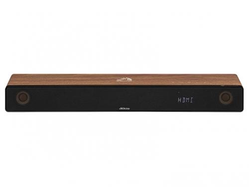 木を振動板とする独自の「ウッドコーンスピーカー」を搭載したテレビ用スピーカー。